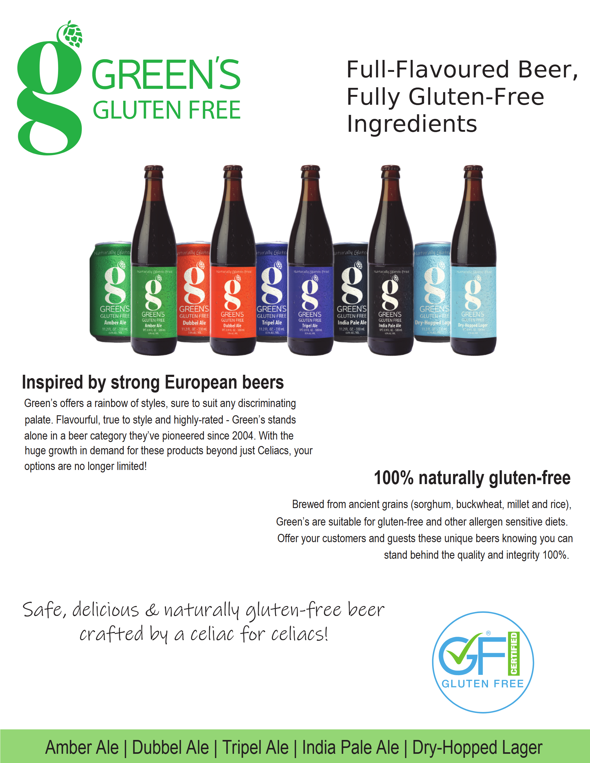 Founded on the principles of quality, health, and community, Greens Gluten Free Beer is dedicated to supporting those with gluten sensitivities by delivering safe, flavorful beverages. Join us in raising a glass to better choices and vibrant taste experiences.